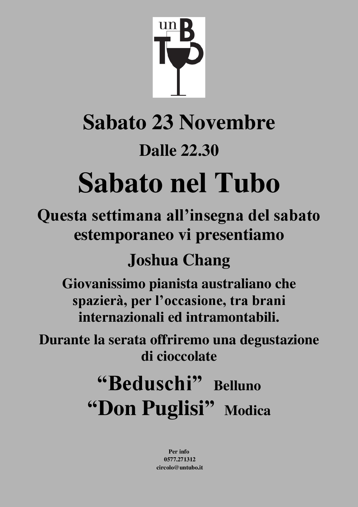 Sabato 23 Novembre Sabato nel Tubo